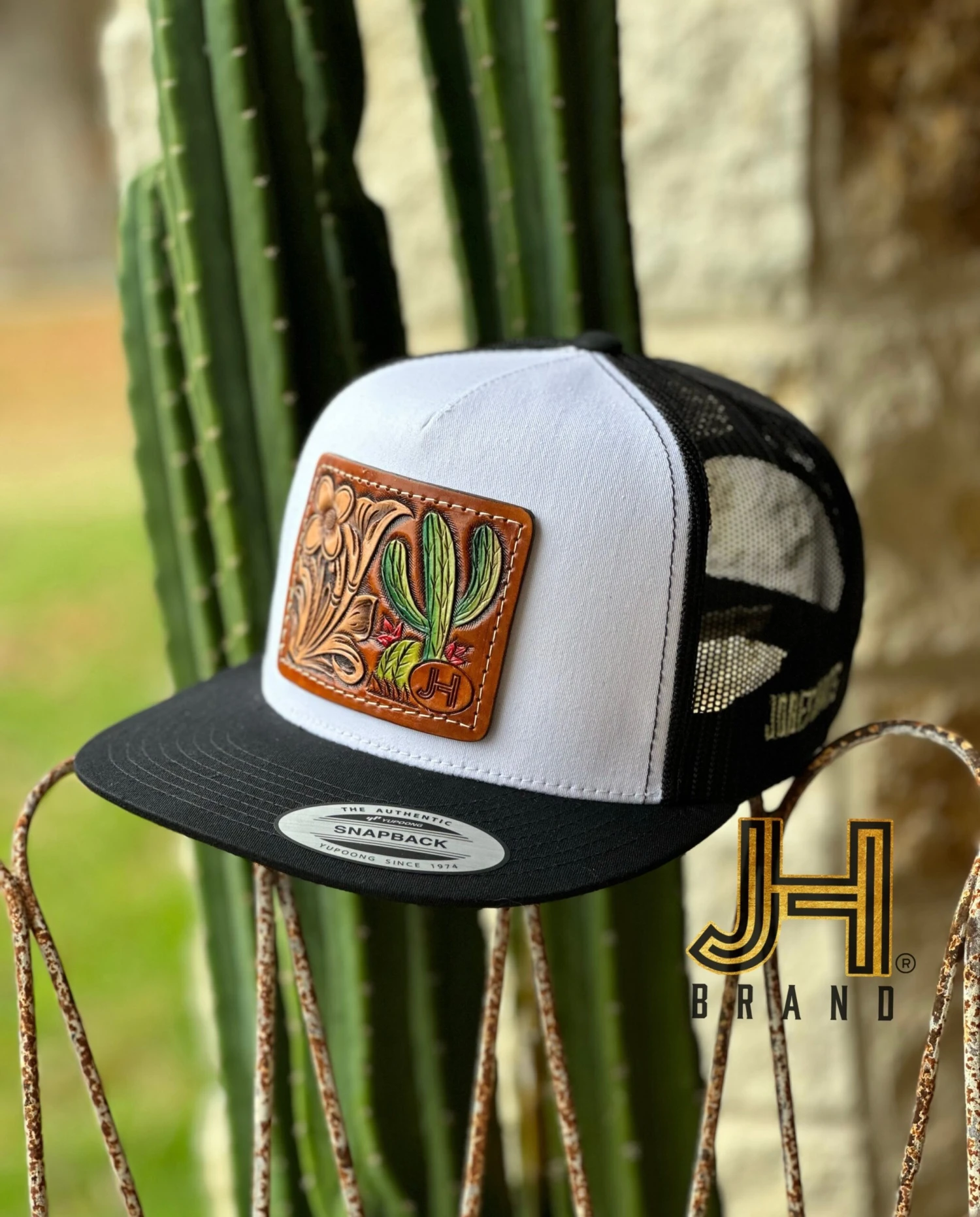2023 Jobes Leather Patch Trucker – White/Black Cactus Leather Patch (Limited Edition)