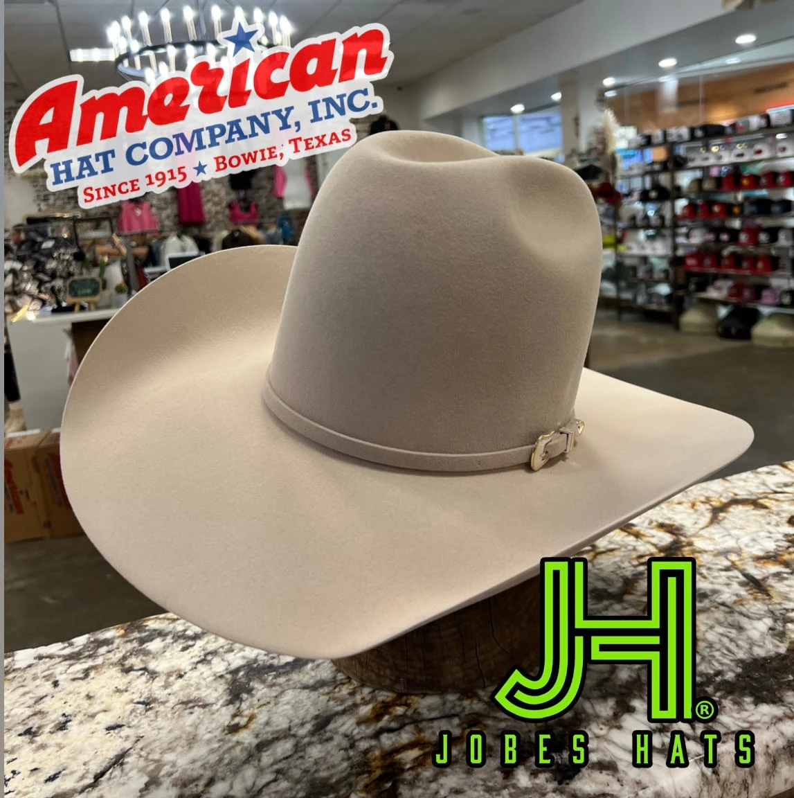 About: The cowboy hat is the most iconic symbol of the western way of life in the world. American Hats are made by hand in Bowie, Texas and have been the ultimate standard since 1915. American fur felts are made from the highest quality furs available and specifically blended to the American Hat Company specifications. Every one of our American Company hats proudly displays an American flag no matter which trim you choose.